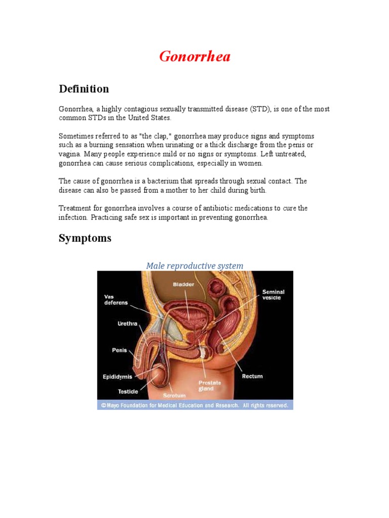 Signs and symptoms of gonorrhea infection in men include: Gonorrhea is caused by the bacterium neisseria gonorrhoeae. Check spelling or type a new query. Gonorrhea is an infection caused by a sexually transmitted bacterium that infects both males and females. Maybe you would like to learn more about one of these? We did not find results for: Consult a doctor for medical advice. In females, gonorrhea can also infect the cervix.